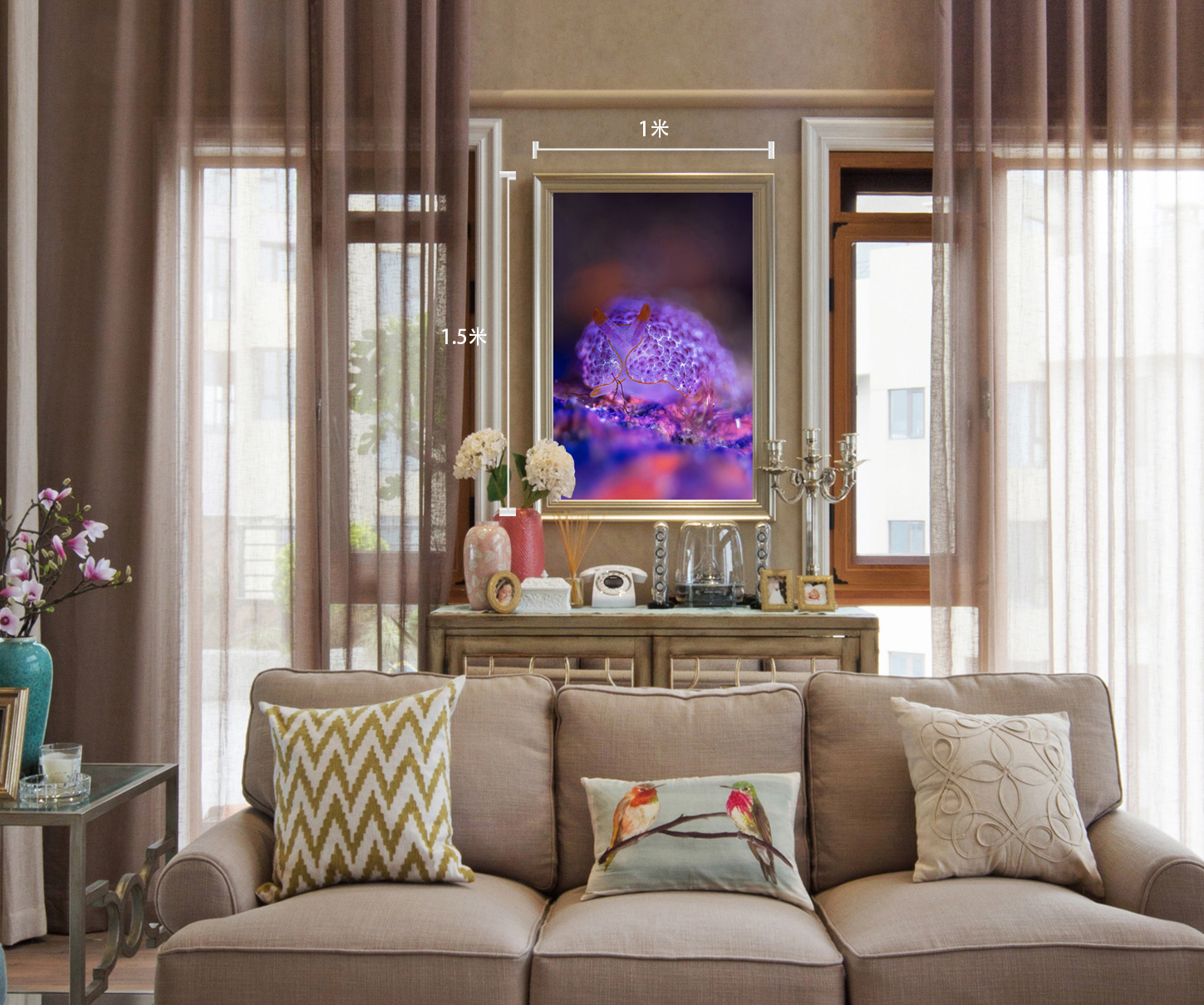 The size of the vertical hanging picture is "1 meter X 1.2 meters"