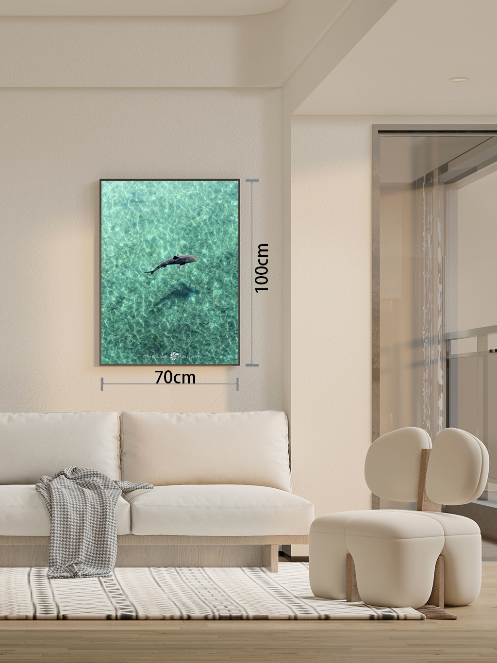 The size of the vertical hanging picture is "0.7meter X 0.9 meters"
