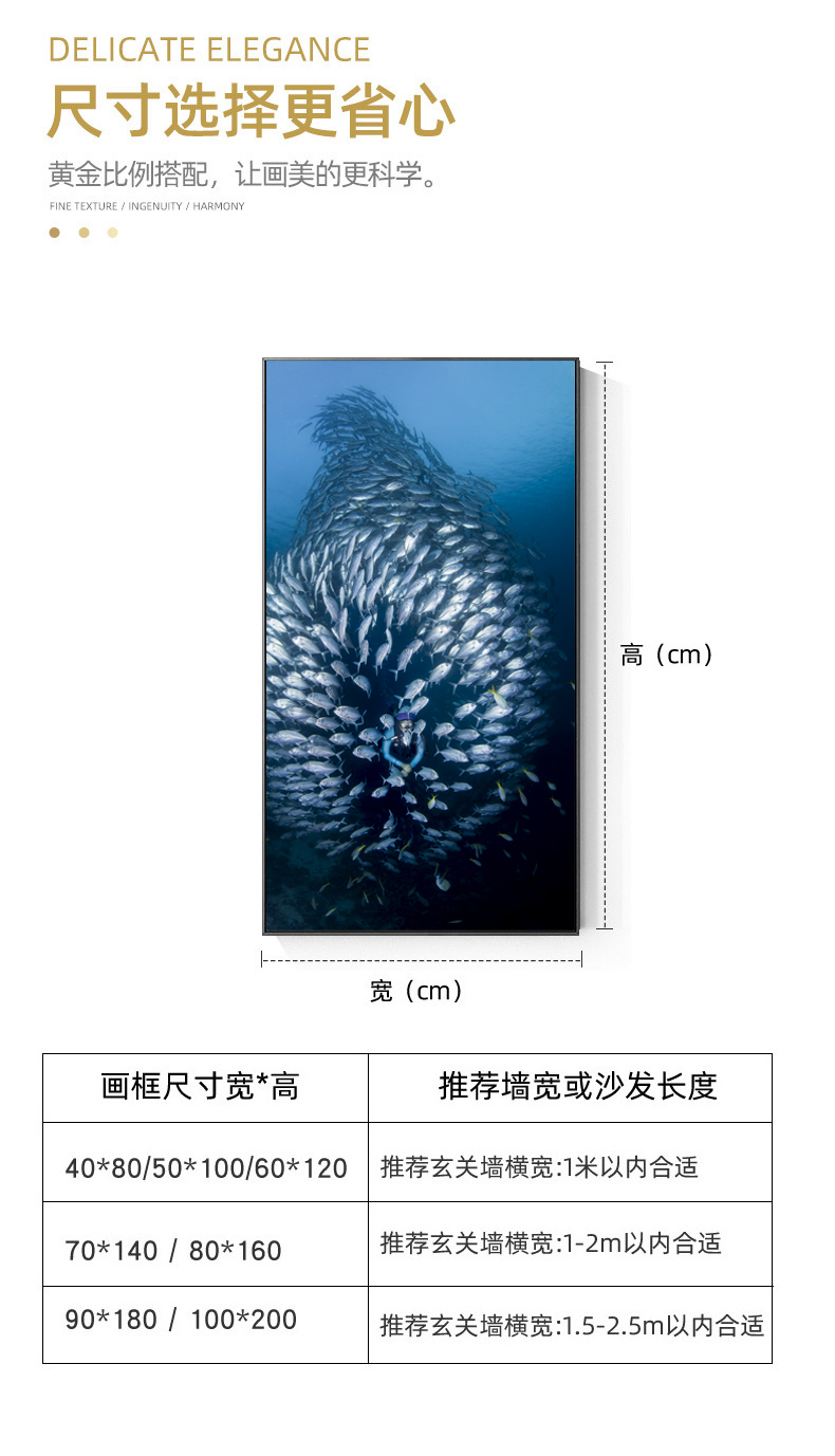 With a combination painting, the size of the hanging picture should be within the range of "2.6 meters by 1.2 meters".